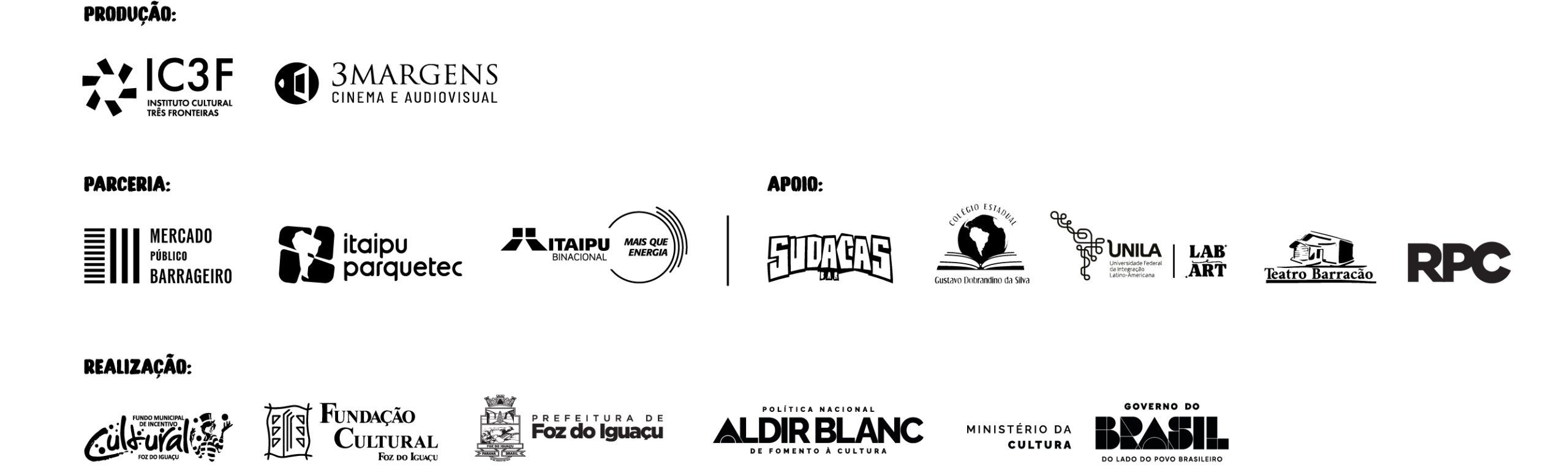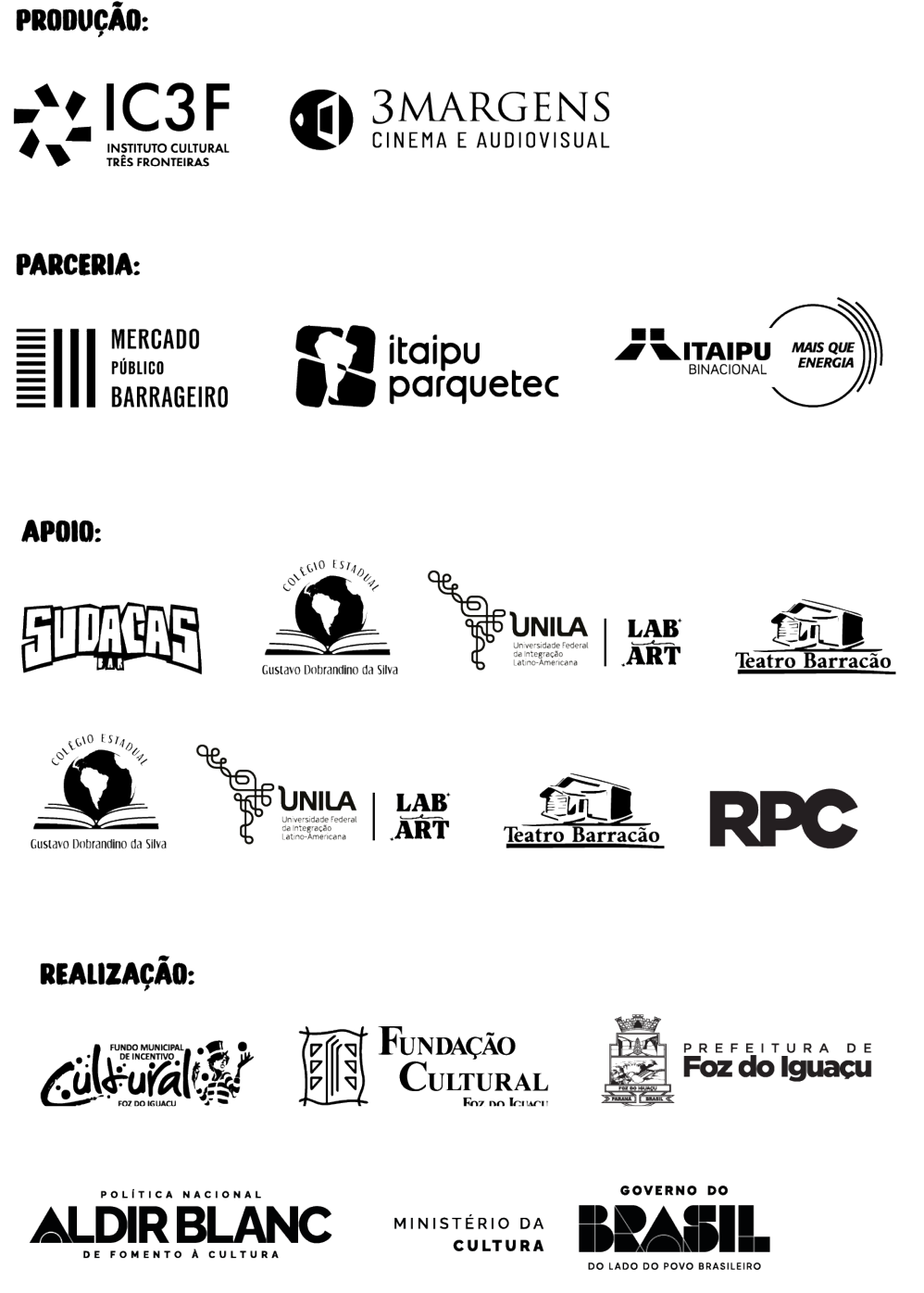 Projeto realizado com recursos da Política Nacional Aldir Blanc de Fomento à Cultura (PNAB), por meio da Prefeitura de Foz do Iguaçu, com apoio do Ministério da Cultura – Governo Federal.